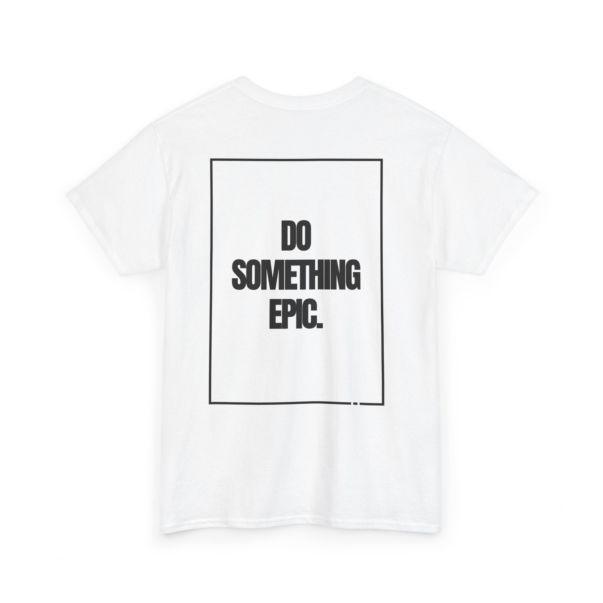 Bold Back Design: The highlight of this tee is the striking “DO SOMETHING EPIC.” text, boldly showcased in a sleek black font within a contrasting rectangular frame on the back. This powerful message serves as a daily motivator to push your boundaries and embrace epic challenges.